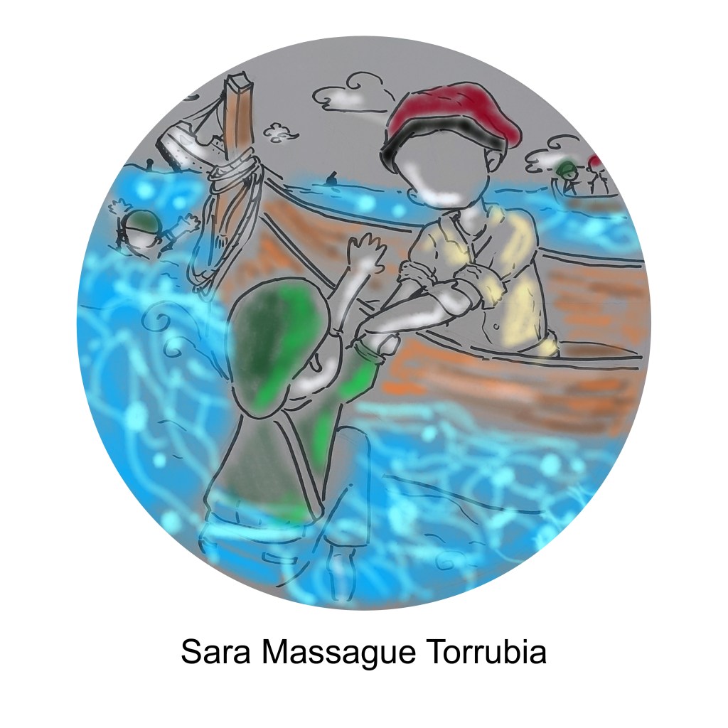 (Cat) El 1r dels 4 dissenys que he triat per fer per al monument del Solidarity Park per al 2023 és de Leo Sancho Cano de l’Institut Marti Pous de Barcelona. He triat aquest per la seva poderosa representació de la art en la lluita. A mesura que el vaixell s’enfonsa i els brigadistes internacionals són tirats cap avall…. en l’últim moment sostenen una trompeta en desafiació. La trompeta és simbòlica d’una crida a tots a recordar el paper de la història de les brigades internacionals, que toquen la trompeta per a l’avanç de la humanitat. Per a mi aquesta imatge diu que la lluita continua.