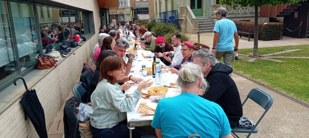 El Mercat d’Associacions va comptar amb molts amics de sempre, com Porta de la Història, la Associació Catalana de Persones Ex-preses Polítiques del Franquisme , el Grup de Recerca de Memòria Històrica de Mataró, La Desbandá i la Brigada Intergeneracional, així com amb nous grups com la Mesa de Catalunya i l’artista Melissa Corbett. La XV Brigada Mixta també va contribuir-hi, ambientant l’escena històrica amb les seves recreacions. Vam gaudir després del mercat d’un meravellós dinar comunitari al que van assistir més de 70 amics i amigues.