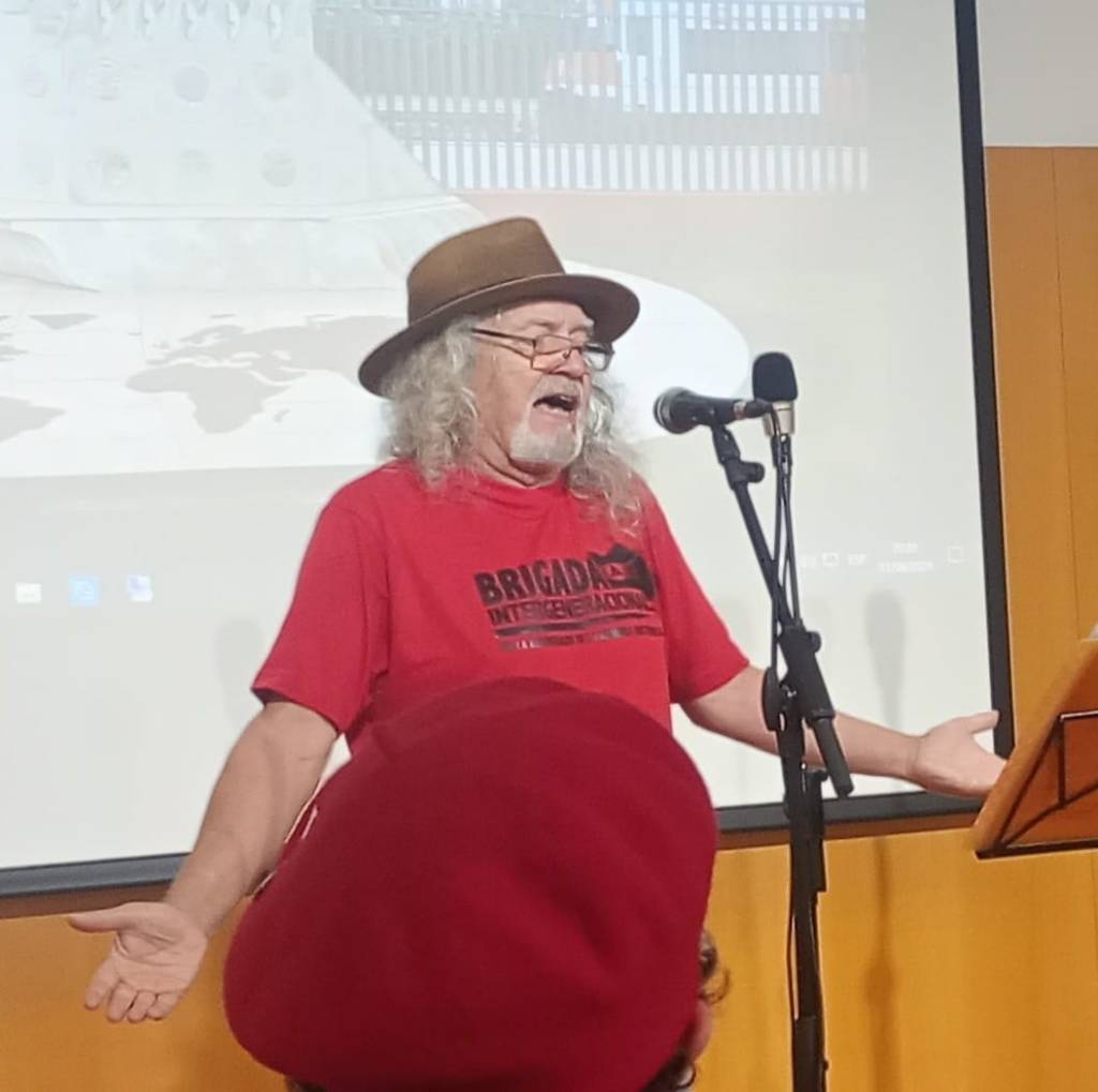 Estem profundament agraïts a tots els artistes que van participar en el festival. No oblidarem el increïble talent de Joe Sol i la Brigada Intergenerational, que van actuar diverses vegades durant el festival. Les potents actuacions de Joe ens van fer cantar i cridar, reafirmant el nostre compromís amb la lluita. Ningú va marxar del festival sense que una de les seves tornades d’unitat ressonés en la seva ment. Els bells talents internacionals de la Brigada Intergeneracional, amb la seva sempre canviant formació, van transmetre la història de les cançons de lluita amb passió. Els Pedroches van debutar amb dinamisme, sorprenent a tots amb el seu flamenc-pop radical. Arturo Gaya Iglesias ens va emocionar amb les seves creatives i emotives cançons a la cloenda de la inauguració de l’exposició «Espais de memòria». Enguany, vam decidir formar un cor amb els assistents al festival, dirigit pel talentós duo format per en Bruno Coffineau, de França, i la María Carretero, de Malgrat. Aquest cor «emergent» va interpretar dues excel·lents cançons a la cerimònia final de la mostra dels ulls de bou. També vam tenir una emotiva lectura de poemes a càrrec de Paul Couchman, incondicional del Solidarity Park, que va explicar la història de la construcció del monument. Les actuacions artístiques exerceixen un paper crucial a l’hora d’unir a les comunitats, i aquests artistes van ser el cor del festival enguany, marcant el to i l’atmosfera de solidaritat. És important destacar que també es va celebrar una taula rodona especial sobre el paper dels artistes en la lluita contra el feixisme. Esperem continuar treballant en aquesta línia en el futur i continuar utilitzant el festival com a plataforma d’unió per als artistes de tot el món.